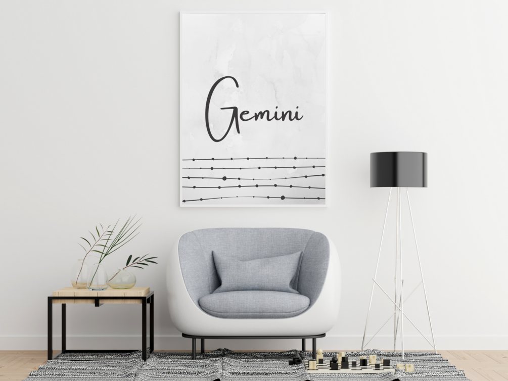 Gemini Zodiac Printable Wall Art - Gray Marble